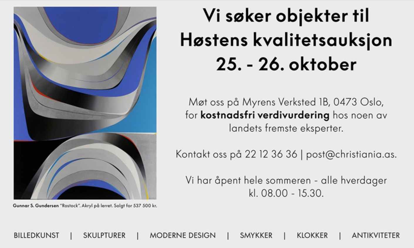 For spørsmål, ta kontakt på post@christiania.as | 22 12 36 36